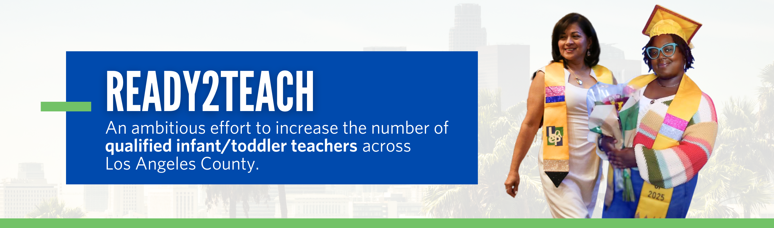 Ready2Teach is an ambitious effort to increase the number of qualified infant/toddler teachers across Los Angeles County. At the end of this one-year, earn-and-learn teacher accelerator program, participants will obtain a California Child Development Associate Teacher permit and enter the workforce. LAEP supports participants through: