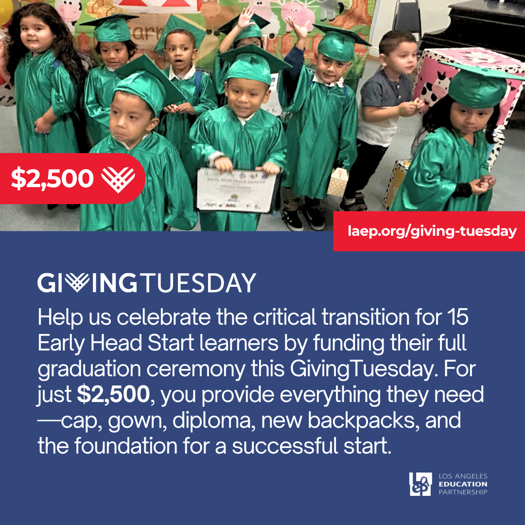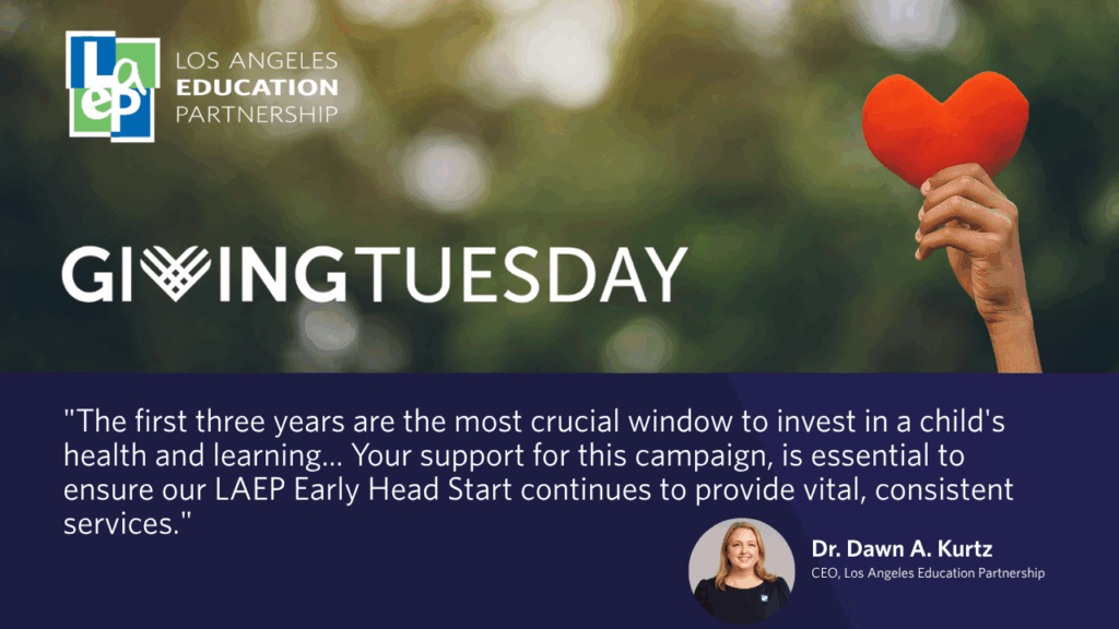 The Los Angeles Education Partnership (LAEP) is launching its First Three Years campaign, joining millions around the world who are participating in the global generosity movement of GivingTuesday. LAEP’s fundraising effort will run from December 2 through December 31, 2025, dedicated to ensuring the infants, toddlers, and pregnant individuals enrolled in its Early Head Start (EHS) programs receive the critical health, nutrition, and developmental resources necessary for lifelong success.