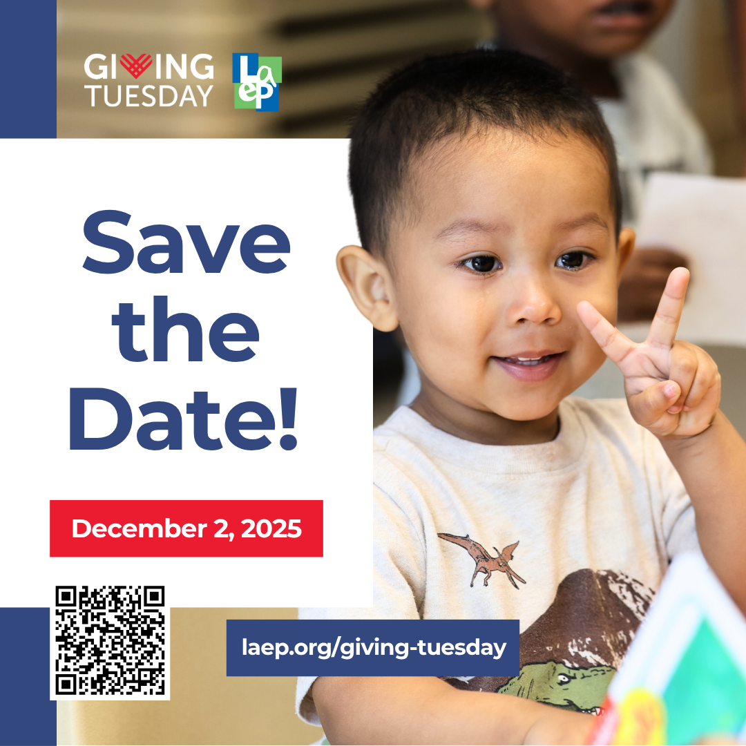 This GivingTuesday, invest in the earliest years of life by supporting LAEP’s Early Head Start First Three Years campaign. Your contribution provides infants and toddlers with the critical nutrition, health care, and developmental resources they need to build a strong foundation for lifelong learning.