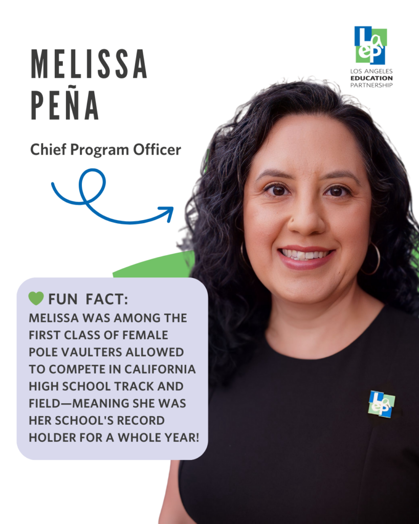 Melissa Peña serves as the Chief Program Officer at the Los Angeles Education Partnership (LAEP), bringing more than two decades of experience advancing educational equity, youth development, and community-centered systems change. A mission-driven and strategic leader, she has dedicated her career to eliminating barriers to learning and seeking equitable outcomes for historically underserved youth. Prior to joining LAEP, Melissa spent over 14 years at Green Dot Public Schools where she launched and scaled high-impact initiatives that reduced chronic absenteeism by 27%, expanded access to wellness services, and built network-wide support systems for more than 600 homeless and foster youth across 18 schools. Her leadership is rooted in both entrepreneurial vision and disciplined execution—designing programs, teams, and infrastructure that strengthen outcomes for students while supporting the adults who serve them.
